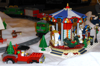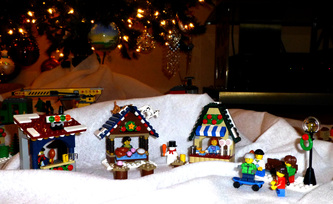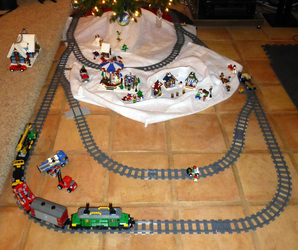 Here is this year's Lego Christmas set up around our tree. It includes Lego's 2012 and 2013 holiday sets, a Lego train, and parts of the 2010, 2011, and 2013 Lego Advent calendars.